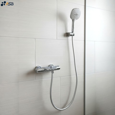 Gecertificeerde messing badkamer wandgemonteerde thermostatische douchecontroller met handdouche met wandmontage, verchroomd