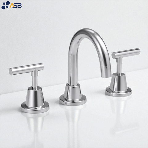 Gecertificeerde Messing Lage Leden Hendel Stijl Handvat Dek Gemonteerde Wastafelkraan Met 3 Gaten Brede Wastafel Voor Badkamer Chroom